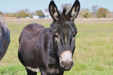 Cheddar came to the Sanctuary in 2024 when we noticed Pickle was depressed. Pickle arrived to us as a jack, & at 12ish years old, he was quite the pistol! He's since been castrated & has really come around to love humans. Aside from needing to be castrated, Cheddar has been an all around healthy mini john donkey & is UTD on all vet & Farrier work!